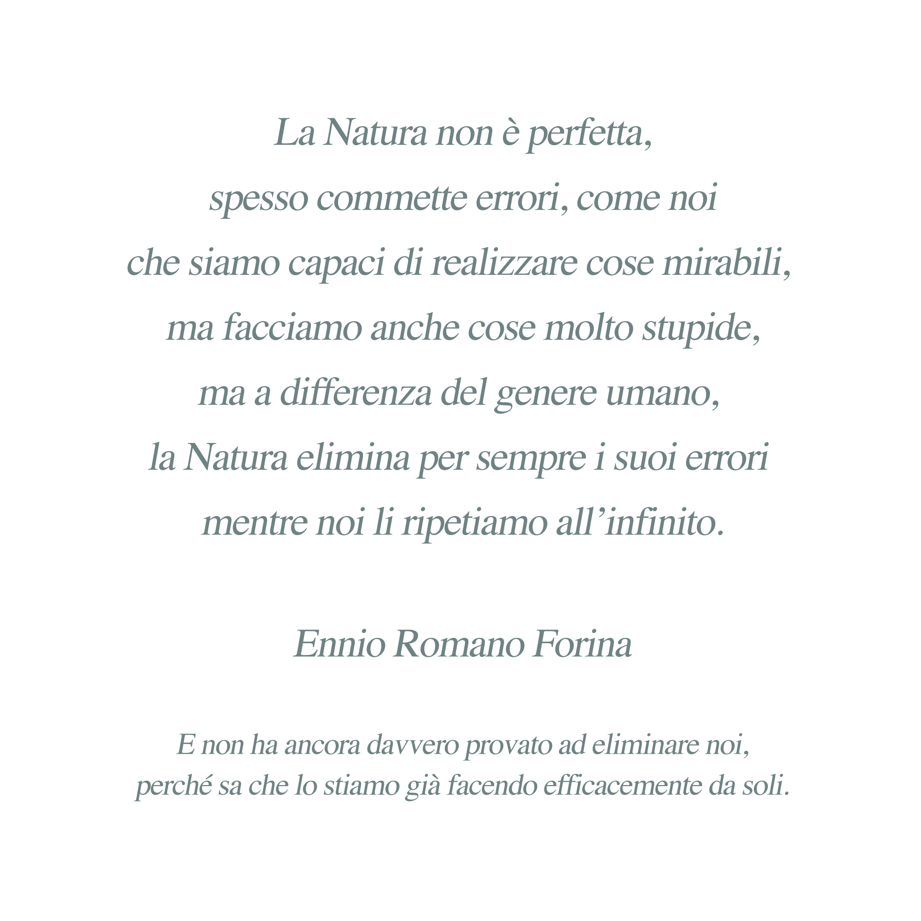Nature isn’t perfect often makes mistakes, like us that are capable of realising marvellous things but we do also many very stupid things, but differently of the human gender, Nature eliminates forever its mistakes while we keep on repeating them endlessly.